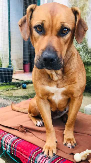 Found abandoned at a supermarket covered in flees, skinny and some scars on her ears that indicates she lived on a chain.