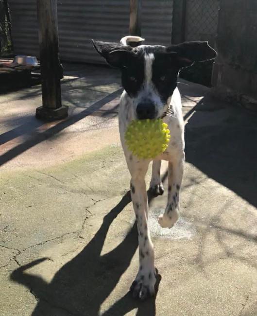 Being to puppy he still is and needs to be. So Nair loves to be with other dogs who play with him and show him the way. He fetches toys ( without destroying them!) collects blankets
