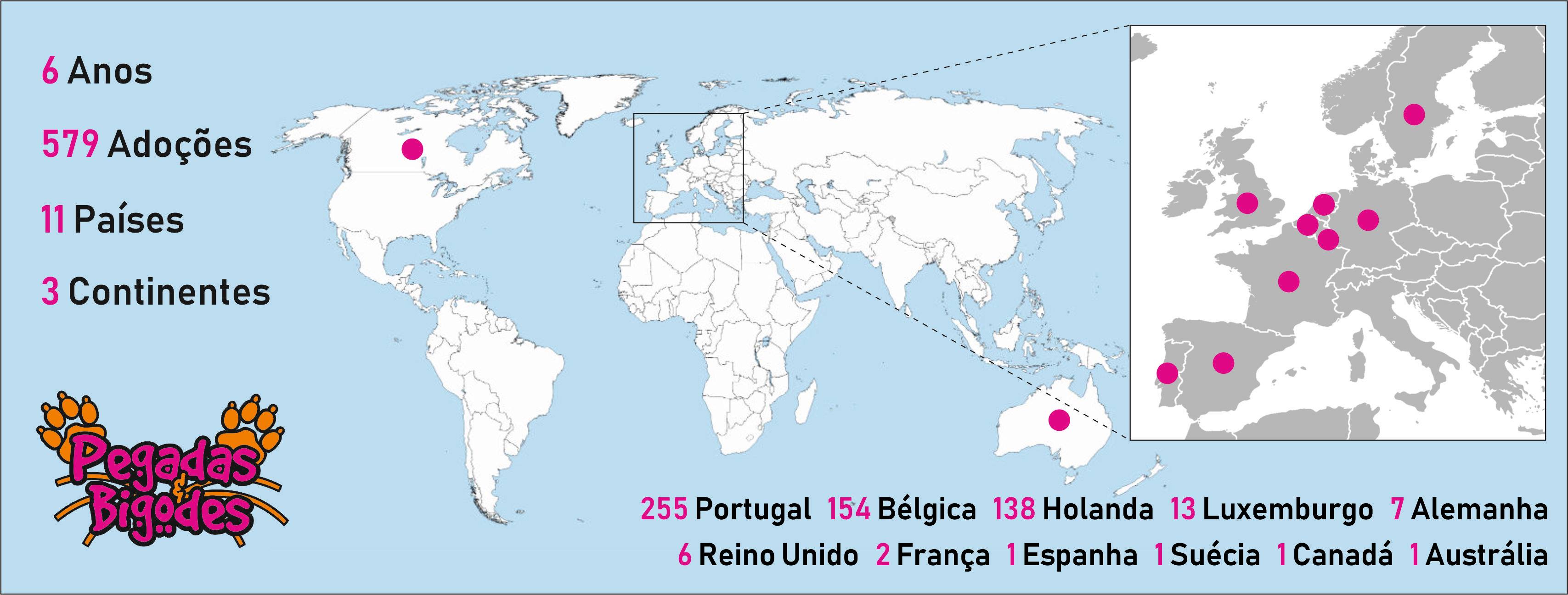 155 adoções para Portugal, Bélgica, Holanda, Luxemburgo, Espanha e Austrália