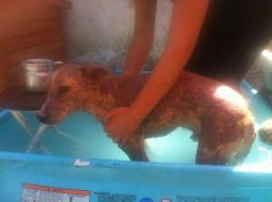 But early in 2016, Areias developed a skin condition which went from bad to worse – it made him itch almost uncontrollably, he lost most of his hair, scratched himself raw and was generally miserable. We and our vet tried everything – tested everything, samples sent to a major laboratory in Spain, tried lots of different medications – but nothing seemed to help. He had daily therapeutic baths to try and soothe his skin, at least temporarily, but nothing was making any real difference.