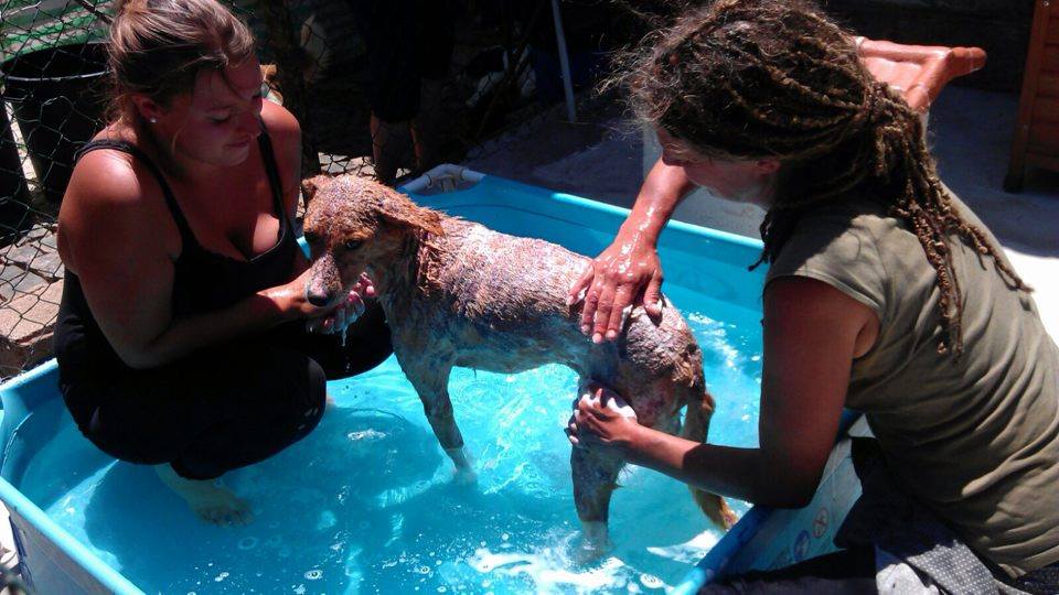 We were running out of options and worried that we weren’t going to be able to save him – he had no quality of life and the risk of serious infection from the wounds on his skin was high. Our shelter manager Natasha & her husband Cedi decided to take him home in a last ditch effort to help him – and an amazing thing happened.